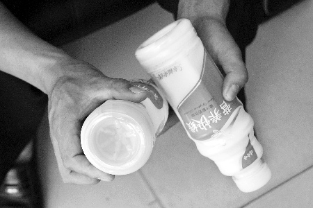 这时,张女士才想到了营养快线饮料。她一看,剩余10瓶还未打开的饮料中,每一瓶的底部都有黑色沉淀物。