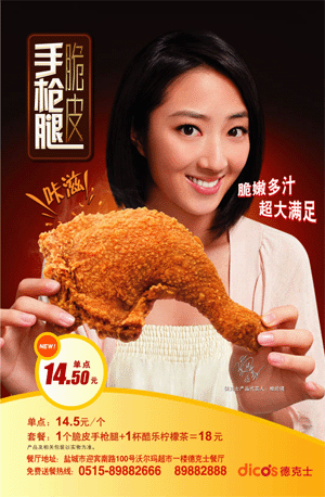 今年5月,德克士推出其新产品“脆皮手枪腿”,并在宣传资料上称,该产品重量达到290克,口感鲜美。