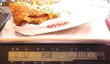 广告中承诺的290克“手枪腿”实际称重只有192克。实习记者 伍亚玲摄