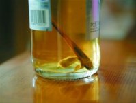 在作坊里,一名中年人正在忙着磨豆浆。豆浆磨好后,他将豆浆倒在一个直径约1.5米的大锅中,并用一个水舀子不断搅拌。记者注意到,在搅拌的同时,中年男子偶尔会从一个小白桶里中盛出一些东西倒进锅里。“这往里倒什么呢?有啥秘方啊? ”记者假装好奇地问。“不是啥秘方,是消泡剂。”中年人扫了记者一眼小声说,“都是买卖人我也不瞒你,没有这样东西,火锅店的豆腐皮哪能那么又白又嫩。 ”
