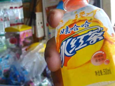 10月23日中午,怀化一位姓李的消费者在怀化市三角坪农业银行旁的一家商店,给小孩子买了一瓶娃哈哈冰红茶(价格3元/瓶),由于当时打开瓶盖给孩子喝没有留意,在小孩子喝到三分之二的时候,他突然发现饮料瓶底竟然满是象虫子似的沉淀物,这让李姓消费者吓了一跳。他赶忙跑回该经销店询问商店老板,质疑该冰红茶是伪劣产品。由于当时商店用电话找到批发经销商的老板在电话中态度很不友好,认为无关紧要不愿来现场处理,并要求消费者自己找厂家处理,消费者很是气愤,遂向记者投诉。
