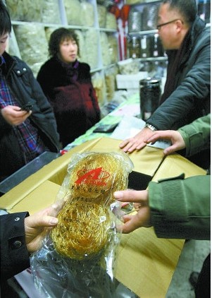 首页深度报道曝光台 曝光台 沈阳鱼翅以假乱真获暴利高达40倍以上 食品产业网 2011-01-13 15:44 曝光台 1月11日,一名在沈阳市北行海鲜市场经营多年的业主爆料,现在沈阳市很多酒店所用的鱼翅都是人造假鱼翅,这 1月11日,一名在沈阳市北行海鲜市场经营多年的业主爆料,现在沈阳市很多酒店所用的鱼翅都是人造假鱼翅,这种人工鱼翅或者合成鱼翅,在海鲜市场上批发价是一袋10元钱。然而在饭店内,几乎可以以假乱真的合成鱼翅在添加剂的掩盖下,最少能获得40倍以上的暴利。 上一篇惠州一非法生产腊肉窝点被端 昨日,惠州市惠城区召开全区食品安全工作会议,会上通报,惠城区日前在汝湖镇端掉一个非法生产腊肉窝点, 上一篇四家品牌的部分调味面制品出现问题本周共抽取样本706个,不合格样本11个,抽检合格率为98.44%,其中蔬菜、鲜肉、食盐、大米、食用油、食糖、 相关文章 保健品暴利不靠质量靠营销 茅台酒类业务毛利率高达92% 武汉食品抽检合格率均达九成以上 碳酸饮料对牙齿的危害 今年高端白酒的销售额比以往下降了五成以上 白酒出货无门 暴利时代已终结 “61度500毫升的典藏水井坊”的超市差价高达301元 新茶和陈茶价格相差一倍以上 散白酒加工变身茅台牟暴利 沈阳查获涉案金额高达数百万元