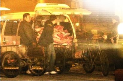 记者了解到,起义门生鲜市场是武昌地区较大型的批发市场,不少商贩会选择来此处贩肉。就在记者暗访时,还有不少三轮车拖着白条肉过来叫卖,价格比正规猪肉便宜许多。