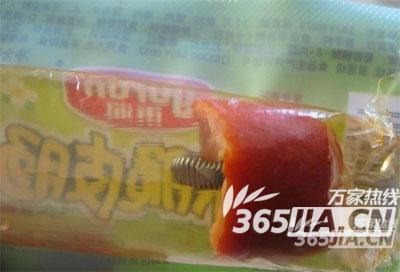 网友爆料原帖:1月26日晚,在超市买了南京雨润脆皮玉米香肠,吃了几口都还好啦。可是让我意想不到事情发生啦。在我吃到最后的时候,感觉吃到了什么很硬的东西,我随后吐出来一看,天呀!居然是一颗大约是1公分的断掉了的螺丝钉。太可怕啦!吃的食品里面怎么会这种东西呢,我都不敢相信。朋友们大家看看。给说说理,当时我还给南京雨润食品公司打过电话,要求把这批有问题的玉米肠撤柜,返回公司做质量检查。而客服人员很坚定的说不可能。还说他们处理这种投诉多啦,无所谓,也不在乎这几个人吃我们公司的食品。太猖狂啦,对我们老百姓的食品安全太不负责啦。朋友们让我们小小老百姓一起为护自己的消费权益吧,给这种不负责任的公司一些警示吧.......