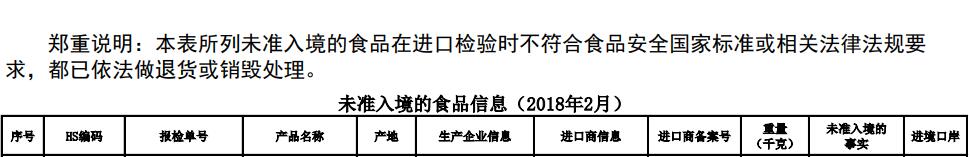3月19日,记者从国家质检总局获悉,今年2月,全国出入境检验检疫部门在入境货物到达口岸接受监管环节,检出质量安全项目不合格并未准入境的食品78批,其中涉及山东6批次。