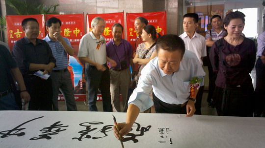 当日正值鹰台书画院成立十周年,10年来,鹰台书画院组织机关干部书画家们利用业余时间和节假日走进社区、走进学校、走进军营,弘扬中国传统书画艺术,传播精神文明,受到社会各界好评。