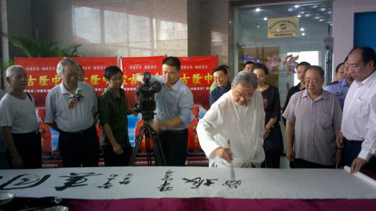 十几位书画家现场挥毫,创作出一幅10米的书法长卷。鹰台书画院将这幅长卷和另外10幅书画作品,捐赠给辛亥革命博物馆。