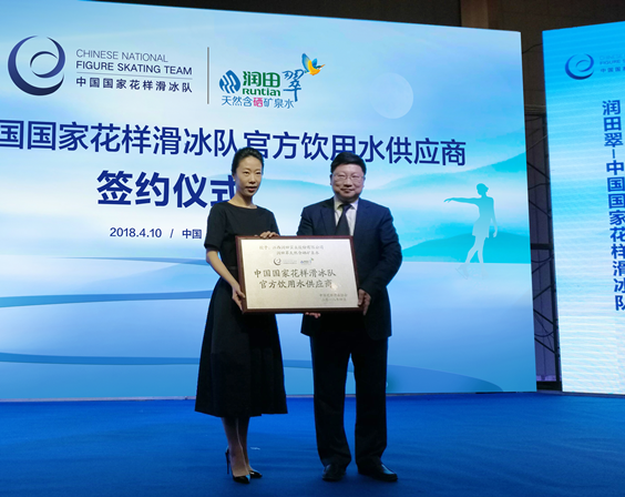 2018年4月10日,中国高端矿泉水润田翠与中国国家花样滑冰队——官方饮用水指定供应商签约发布会在江西宜春明月山隆重举行。