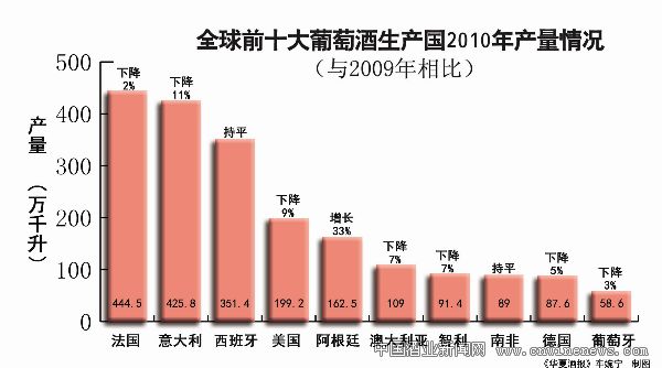 2010年全球葡萄酒产量2600万千升 葡萄种植面积呈下降态势