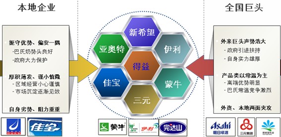 过去,中低端市场被本地巨头、各类品牌层层分割,高端市场被国内巨头、国外企业掌控。但是经历三聚氰胺事件后,山东省内的乳业重新掌握市场主动权,市场销售不降反升,而全国一线销售则在山东销售明显下降。山东省乳制品工业协会秘书长甘春明认为,山东乳制品企业目前还属于二线水平,经过这次行业“地震”后,以得益、亚奥特为代表的地产品牌开始发力,竞争实力提高,对当地市场控制力增强,成为全省乳业领军企业。山东乳制品企业也不负众望,练好内功,开始出现一轮新的增长期。以得益为代表的山东企业,正在筹划省外布局,山东奶走出去正在进行中。