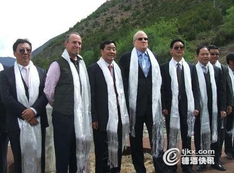 酩悦轩尼诗亚太区董事总经理Mark F BEDINGHAM(贝静康)先生、迪庆州州委书记张登亮先生、州委副书记、州长黄政红先生,香格里拉酒业公司董事长舒世平先生等为酒庄奠基培土。参加开工庆典的还有州委副书记马文龙、州人大主任李灿光、州政协主席杜永春、州委秘书长刘家训、省工信委食品药品处处长朱玲、省商务厅市场流通处杨杰副处长、云南省酒类协会秘书长马黔飞、昆明市酒类协会副会长兼秘书长方志强以及州属各局、办领导,德钦县格桑朗杰县长、廖文才副书记及县委、人大、政府、政协及各局委办的领导以及各新闻媒体记者等。