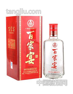 健康白酒,宴请百家 百家宴系列产品是五粮液股份公司精心规划的一款自销优势产品,喝过的人有80%反映,五六十元的百家宴酒,和其他品牌100多元的酒相比,口感相当。 据了解,百家宴酒源自五粮液的酿造工艺,和五粮液一样为纯粮酿造产品,而且不含任何香精,含醇量极低,属于健康型白酒,喝着顺畅,不口干,不头晕。 据介绍,百家宴目前推出了五款酒,其中包含五粮液系列酒中唯一的一款光瓶酒,延续了原五粮液瓶子的包装风格;其余还推出了四款包装最符合当今感观的产品,均以红色的喜庆颜色为主,具备“百家宴酒,宴请百家”的基本特质。