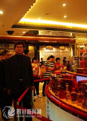 王葆森:我们在这次糖酒会上一共带来了五款各种档次的酒,有“祝君富贵百年酒”,“祝君鸿福齐天酒”等。在糖酒会上主要力推的产品就是五粮液福喜迎门系列酒。