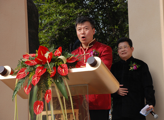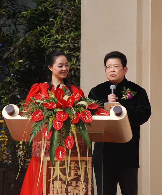 特邀嘉宾魏明伦、泸州市副市长梁伟华、泸州老窖股份有限公司董事长谢明,共同启动了特制按钮,国窖1573定制酒闪亮登场,将整个大典的气氛推向高潮, 2010款国窖1573定制酒正式面向全球首发。