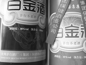 本报记者在国家食品药品监督管理局网站上没有检索到茅台白金酒的相关信息。但“卫食健字(1999)第0204号”的产品名称显示为“茅台不老酒”,而没有关于“茅台不老酒”更名为“白金酒茅台不老牌酒”或者另起炉灶的“白金酒”登记信息。