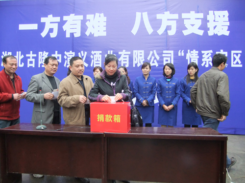 在捐款现场,襄樊市红十字会专职副会长刘全新表示“古隆中演义酒业一直积极地履行着社会责任,这一次玉树地震发生以后,古隆中演义酒业主动和市红十字会联系,积极为灾区捐款,我们非常感谢他们。”