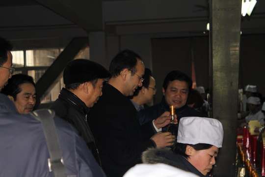 施副市长一行深入古隆中演义酒业白酒、包装、酒库、成品库生产一线了解年前生产经营情况,并与公司董事长兼总经理邹远东等高层管理人员亲切交谈,询问公司2010年生产经营情况和2011年发展规划,施副市长对公司双节期间开展的“喝金钻、抢苹果”系列促销活动取得成功表示赞许。当看到产品供不应求的情形时,领导们要求企业想方设法满足市民的节日需求,并鼓励企业在2011年以经济效益为中心,再进一步加大外市场拓展力度。