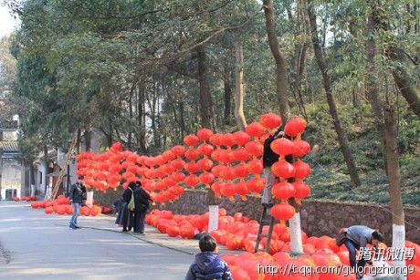 2月1日上午十时,襄阳古隆中风景区工作人员加班加点用印有“演义酒”字样的大红灯笼装饰着景区主干道,为大年初一免费游玩古隆中景区的游客们增添新春佳节的浓浓节日氛围,古隆中演义酒业公司也先后派广告部、宣传部、总办工作人员协助灯笼的搬运和布置。