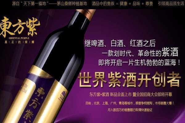 由九州酒业研究酿造的世界第五类酒——东方紫酒,开创酒类新品种,为高端人士追捧,钱途不可限量。