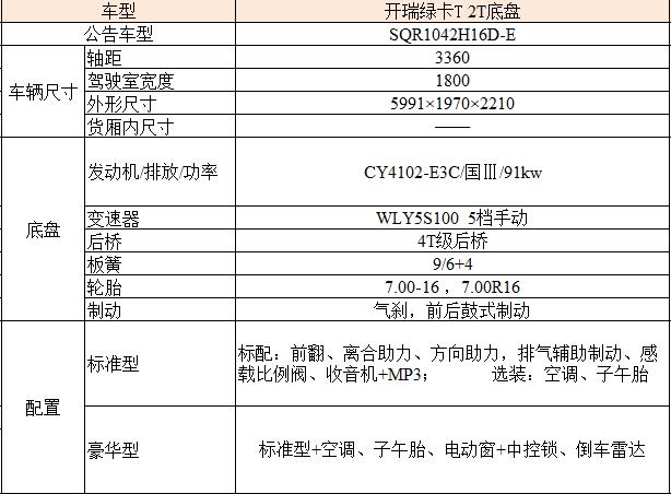2013年上半年开瑞绿卡将到位159个公告,其中国Ⅲ20个,国Ⅳ 139个,宽体公告56个,包括邮政车、冷藏车、厢式货车、以及各类专用车底盘,我们可以看到开瑞绿卡在2013年的市场决心。2013年,众多绿卡的身影将会穿梭在各个专业配送线路上。