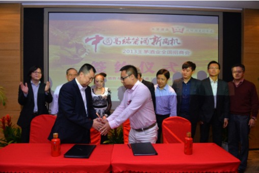 2013年3月27日王茅酒业在成都仁恒置地广场六楼举行的——中国酱酒新商机 . 王茅全国招商会活动现场。中国酒业知名实战营销专家铁犁老师语,中国白酒进入了特色产品、特色营销的新时代,一些具有优良的品牌故事与文化特点的产品,将率先在市场上展露头角,纵观新时期以来白酒行业的发展史,经历了三次调整、三次机遇,从“浓香崛起、低端扩张”,到“酒商崛起、高端革命”,2013年进入“酱香领航”的全新战略机遇期,虽然当前白酒市场存在一定的不确定性和挑战,但恰恰为拥有厚重文化积淀、鲜明发展理念、强大整合能力、创新发展模式的新领军者的诞生提供了极佳的机遇,未来3-5年是中国白酒市场稳步扩容、白酒消费进一步升级的时期,中国酱香型白酒进入黄金时代不可避免,在经过新一轮洗牌之后,涵盖经典商务用酒、准高端白酒、次高端白酒的“腰部”将进入爆发式增长,这也是中国白酒的最大机遇所在,而在传统的白酒四大香型中,贵州酱酒由其独特的藏贮周期、天然的环境屏障,顺应了健康饮酒的消费升级需求,实现了30年来最大的增幅,酱酒一枝独秀已成大势所趋王茅酒业在上述几方面有得天独厚的优势。加上优秀的团队和超前的营销理念,将在中国酱酒中高端领域大显身手。同时成都王者归来酒业有限公司和王茅酒业现场举行的签约仪式,极大的提升与会经销商的加盟热情。参加王茅酒业全国招商会的众多经销商也一致认同王茅酒业的招商理念,他们认为,王茅酒业独创的商业模式、明晰的企业战略、充足的资本支持、成熟的团队运营,构成了成为新领军者的强力保障。