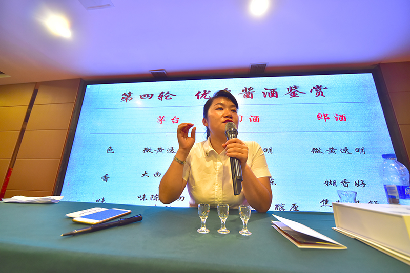 在品酒环节中,台上国家一级专业品酒师何开萍老师在引领大家如何鉴别品酒之余就酱酒文化以及品酒方法、健康饮酒方面的相关话题作了深入浅出的讲解。台下关于白酒知识问答和有奖趣味互动热闹非凡,整个现场被浓浓的酱香气息弥漫。