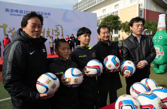 2017年11月26日上午10时,燕京啤酒2017中国足协杯“种⼦计划”进校园公益活动在上海嘉定区南苑中学举行。中国足协常务副主席兼秘书长张剑,上海市足球协会主席、前国家队教练员朱广沪,北京燕京啤酒股份有限公司董事长赵晓东,北京燕京啤酒股份有限公司副董事长、常务副总经理谢广军,上海市足球协会原常务副主席兼秘书长胡康健,中国女足主原教练马良行,中国女足原教练员李必以及前国家队队员秦国荣、上海市足球协会执委会成员成耀东,日本殿堂级球员——拉莫斯·琉伟等足球名宿、企业代表及媒体代表,共计近百名“中国足球人“参与了活动,为老师和同学们赠送足球,中国足球名宿团成员与小球员交流互动并进行了少儿足球比赛。
