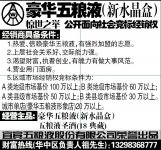 近日,中国糖酒网从五粮液获悉,豪华五粮液(新水晶盒)爆出惊世之举,公开面向社会竞标经销权!如图所示...