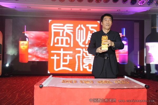 图为北京恒亿盛世葡萄酒有限公司董事长石福利宣布该公司独家经营的“恒亿盛世伊莎贝拉”系列葡萄酒正式面市。