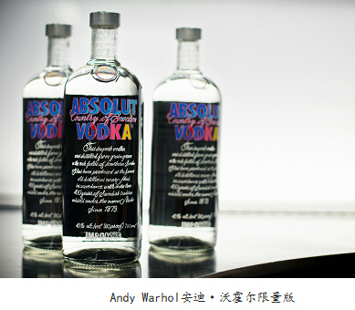 绝对伏特加“安迪·沃霍尔”限量版热销零售价:238元/ 700ML。说到酒和艺术的跨界,就不得不提到绝对伏特加。绝对伏特加每年都会尝试用新的技术和独辟蹊径地开发艺术创意产品,推出限量版,使其成为世界上最具标志的伏特加。