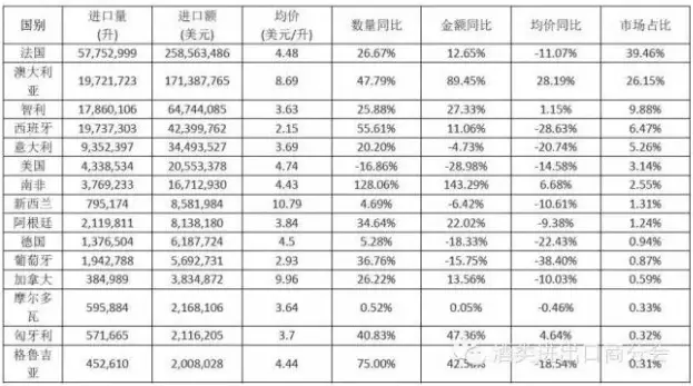原瓶装葡萄酒进口情况