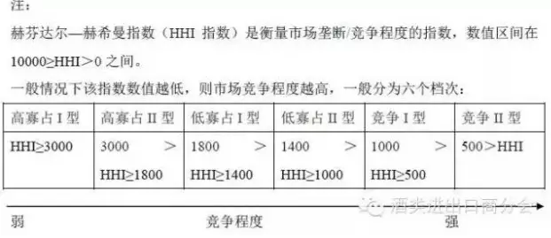 从进口企业方面看,瓶装葡萄酒进口市场的赫芬达尔—赫希曼指数(HHI指数,文尾有注解)为379,属于高度竞争市场。
