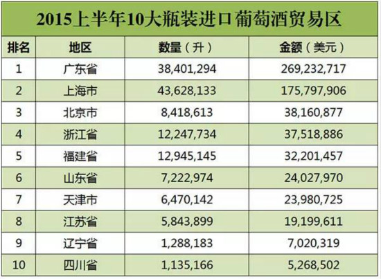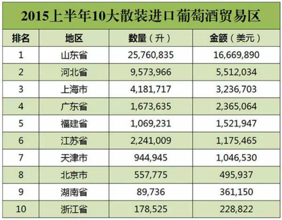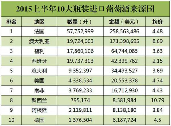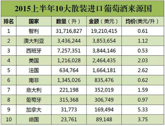 2015年上半年中国葡萄酒进口数据出炉