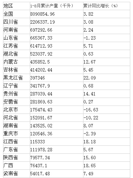 首页市场行情酒类 酒类 2015年1-8月中国31省市白酒产量情况 中国白酒网 2015-09-18 14:54 酒类 上一篇南半球葡萄酒在英国销量增长迅猛英国葡萄酒与烈酒贸易协会最新市场数据显示,南半球酿酒国家的葡萄酒在英国餐馆酒吧的销量增长迅猛,抢占 上一篇2015年上半年中国白酒企业营收排行排名 单位名称 营业收入(亿元) 1 贵州茅台 157.79 2 五粮液 112.15 3 洋河股份 95.71 4 泸州老窖 36.96 相关文章 最新调查:美国市场最大 中国葡萄产量世界第一 国产啤酒产量连续两年下降 啤酒业:产量连续两年下降 一个多月的茅台价格走势 亚美尼亚去年白兰地产量同比下降 去年云南啤酒产量达105万吨 2015年中国啤酒进出口情况 目前白酒业仍存在有价无市的情况 10月份全国葡萄酒产量同比增长 未来七年内英国葡萄酒产量预计将翻一倍