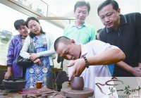 别人参加果蔬会是为了卖货,而烟台海阳的茶农们则只吆喝不卖货,即便是送到手里的订单他们也不肯接。24日,记者在果蔬会海阳市展区了解到这么一件奇事。 24日上午,记者来到设于烟台市国际博览中心的海阳市展区,看到展区的内侧设立了一个小小茶社,不少参观者正在品茶