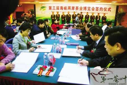 项目洽谈、学术研讨、两岸交流 第三届海峡两岸茶业博览会签约仪式上,45个项目现场签约 本届海峡两岸茶业