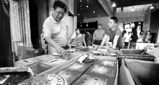 “近几年,中秋节送茶礼之风开始在武汉流行,送茶既低调又有品味,”崇仁路茶市场专做普洱茶的袁先生介绍,他们推出的茶礼主要是选自茶界“天才”何宝强先生制作的高端普洱茶,此茶不仅味道好还具有极高的收藏价值。此种普洱选用树龄在60年以上的乔木料,经过后期一系列最原始的加工,再进入市场,考虑到市场接受程度,一般大众消费茶礼或是自饮类主要是以今大福的大品青饼为主推,零售指导价为350元/饼,玩家级的可以选择班章“大白菜”系列,但价格偏高。