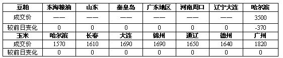 【大豆现货收购价格(元/斤)】长假期间,黑龙江油厂收购价下跌5-13分/斤:三棵1.82,吉庆1.78,友谊1.72,桦川 1.75,海伦东源1.8,宝清1.70。省内大豆购销清淡,成交稀少,大部分农户对新豆价格并不认可,惜售观望心理较强,贸易商面对国际大豆价格大幅下跌,收购谨慎。(于海峰)