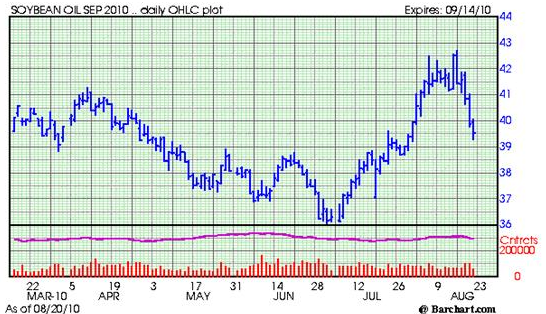 8月20日收盘时,9月豆油合约比一周前下跌了3美分,报收39.52美分/磅;10月合约下跌3.01美分,报收39.69美分/磅。