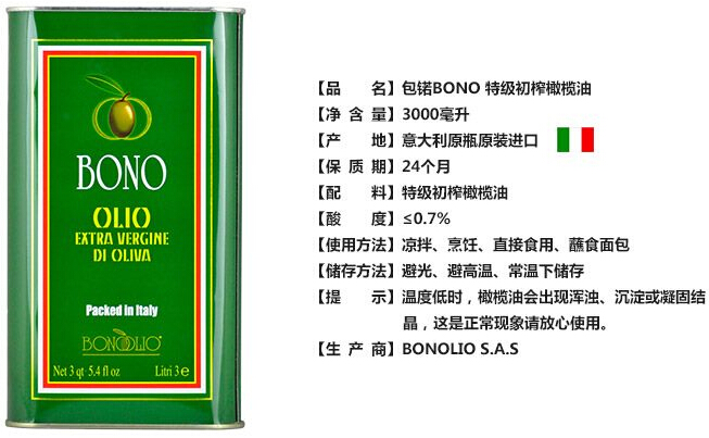 Bono包锘特级初榨橄榄油3L热销149元,这是来自意大利进口的精品食用油。P.D.O原产地橄榄油的共同特点是,