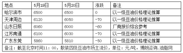 5月20日全国部分地区豆油价格行情
