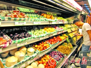 在一些大型卖场里,记者发现进口水果的销售总量虽不及国产普通水果,但其销量依然很可观。而在一些大型卖场,商家为了招揽顾客,进口水果也往往摆在了最显眼的位置,不时会有市民来到保鲜柜前挑选。