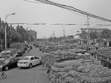 对于金乡人来说,一车车的大蒜就是他们的命根子。 刘红杰 摄