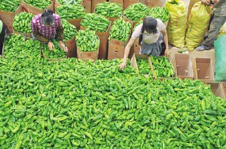 现在到良庆镇收购辣椒的收购商主要运往湖南的长沙和贵州的贵阳等地,每天发8车,每车装3万斤左右。“这个销售情况还远远不够。”刘春荣估算,以每车3万斤计算,每天要发20车的辣椒出去才算销售顺畅。