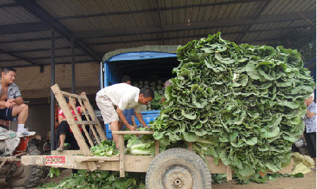 【中国糖酒网蔬菜价格行情与蔬菜资讯】2011年6月13日下午,南阳商贩在纸坊乡石庄村菜市场内大量收购春白菜
