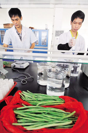 首页市场行情蔬菜 蔬菜 三亚市崖城镇对豇豆进行安全监测 海南日报 2012-02-22 13:58 蔬菜 三亚市崖城镇对豇豆进行安全监测 2月21日,三亚市崖城镇农产品质量安全检测站的检测员在对豇豆进行安全监 三亚市崖城镇对豇豆进行安全监测 2月21日,三亚市崖城镇农产品质量安全检测站的检测员在对豇豆进行安全监测。崖城镇是海南乃至全国重要的冬季瓜菜种植和集散地,目前日均出岛瓜菜1800吨左右,高峰时近2500吨。为保障出岛瓜菜质量安全,崖城镇农产品质量安全检测站每天要检测1300多个瓜菜样本。 上一篇今年起,免征蔬菜流通环节增值税今年起,免征蔬菜流通环节增值税 前不久,国家财政部、税务总局联合发布通知,明确自今年起,免征蔬菜流通 上一篇上周云南蔬菜批发价格行情上周云南蔬菜批发价格行情 省商务厅前天发布云南省生活必需品市场运行监测情况,根据对沃尔玛、家乐福、玉 相关文章 山东临沂:“菜篮子”好拎了 长沙:菜价5涨7跌3持平 金寨:大雪期间蔬菜价格上涨 陕西:蔬菜价格小幅上涨 新乡市:蔬菜价格上涨 长沙蔬菜价格较上周下跌0.18% 山东日照:蔬菜价格连续六周上涨 襄阳蔬菜类价格继续以降为主 山东菜价持续下降 长沙蔬菜价格较上周下跌2.87%