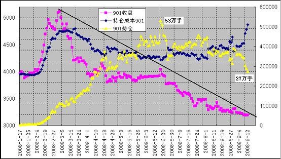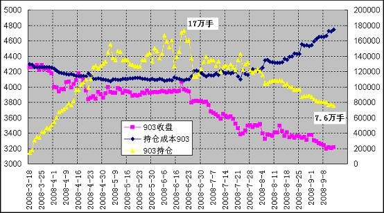 903合约未能接替SR901成为新的主力,进入8月以后903合约持续减仓,目前仅余7.6万手(见图2),已不足峰值时的一半,在后期的行情中只能处于被动跟随的地位。