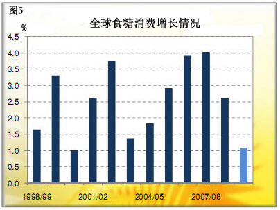 全球经济形势的不景气势必会影响到09/10榨季消费的增长——关键问题在于,是否会非常糟糕,以致于消费的增速变为负数?关于这一点,任何的预测都是徒劳的,只有事后才知道。目前初步估计消费增幅约为1%,在经济如此动荡的背景下,这一预测还要根据情况的变化不停调整。(陶子)