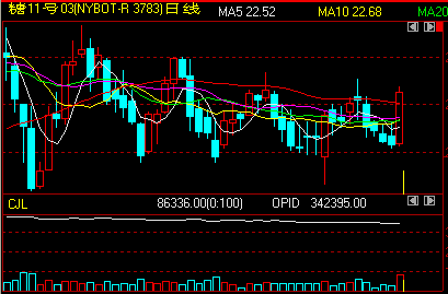 交割月 收盘价 涨跌 最低价 最高价 成交量 持仓量 1003 23.26 +1.11 22.13 23.38 86336 342395 1005 22.44 +0.87 21.57 22.57 38495 122286主力月份1003日线图