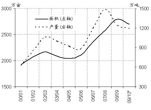 今年糖业无疑是甜蜜的,无论是国际糖市还是国内糖市都走出了一轮大牛市行情,而这场牛市行情围绕的一个主题就是“减产”。据统计,2008/2009榨季全球食糖产量为1.438亿吨,相比2007/2008榨季的1.633亿吨减少1950万吨。而2008/2009榨季国内白糖产量为1243.12万吨,较2007/2008榨季的产量1484.02万吨减少约240万吨。减产炒作造就了2008/2009榨季白糖市场牛市,那么在2009/2010榨季历史是否会重演?